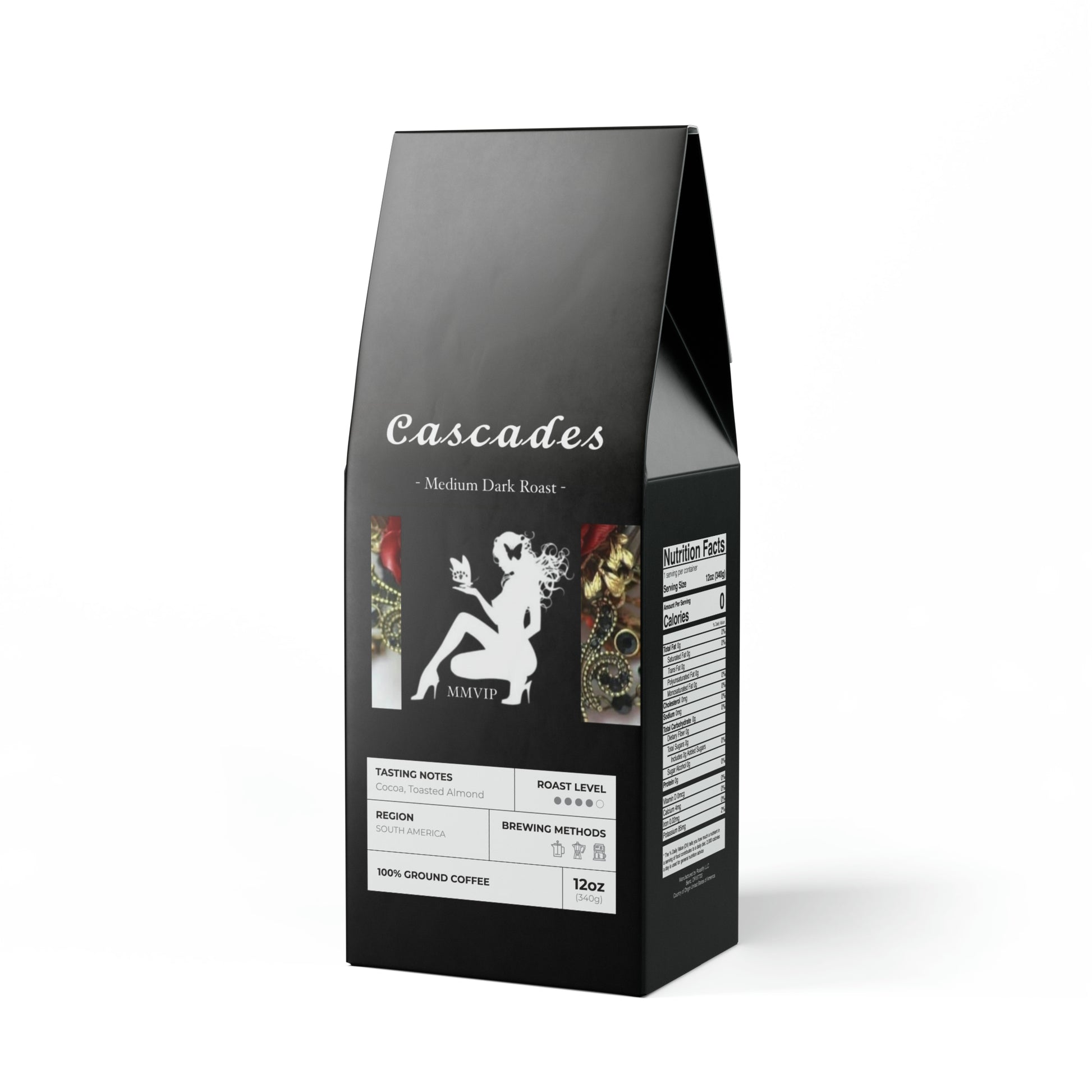 The Cascades Coffee Blend delivers a rich and robust delight for your mornings. Packed in a 12oz bag, this medium-dark roast boasts flavors of cocoa and toasted nut, offering a full-bodied experience with each sip.